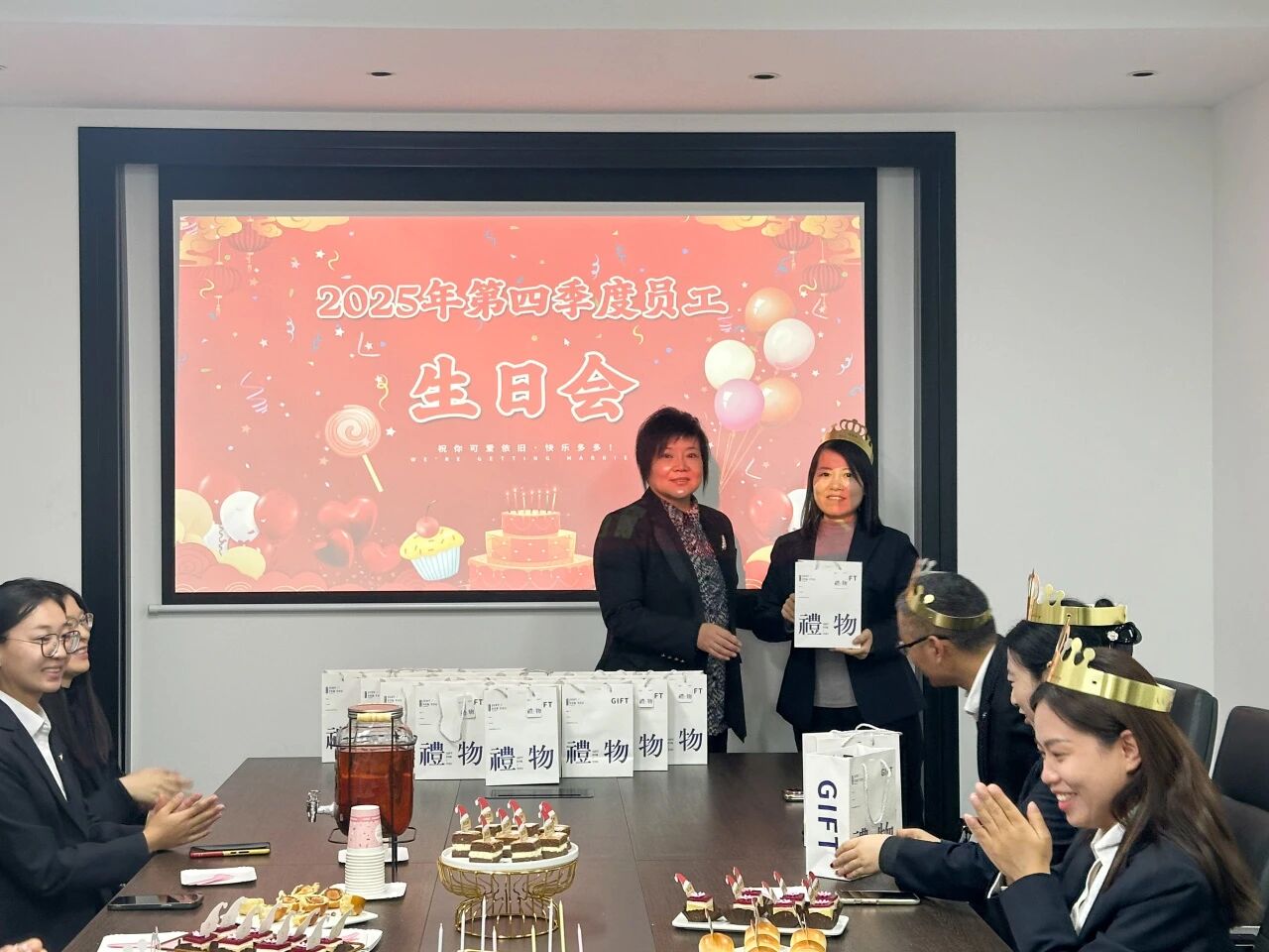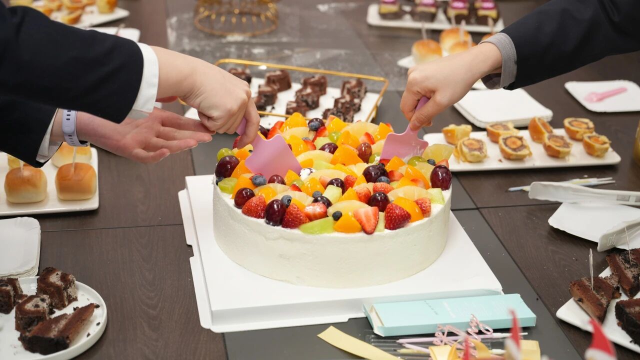 活动现场处处彰显用心,精心打造的甜品台颜值与口感兼具,精致甜点、清爽饮品一应俱全,为整场活动增添满满甜蜜气息。伴随着熟悉动人的生日歌,全体同仁齐声欢唱,送上最真挚的生辰祝福;寿星代表们并肩而立,共同执刀切开寓意圆满的生日蛋糕,香甜滋味在舌尖蔓延,暖心情谊在心底流淌。领导送福环节尤为暖心,律所领导逐一为寿星送上专属定制礼品,寄语间满含期许与肯定:认可大家四季度深耕法律实务、坚守执业准则,为当事人保驾护航、维护公平正义的专业付出,更勉励全体法律人永葆“睿思观通、仗义执言”的初心,以专业立身、以同心聚力,在践行法治使命的道路上温暖同行、步履不停。现场欢声笑语不断,大家褪去工作中的严谨专注,畅谈生活趣事、交流办案感悟,在轻松互动中拉近心距,凝聚同心向法的强大合力。